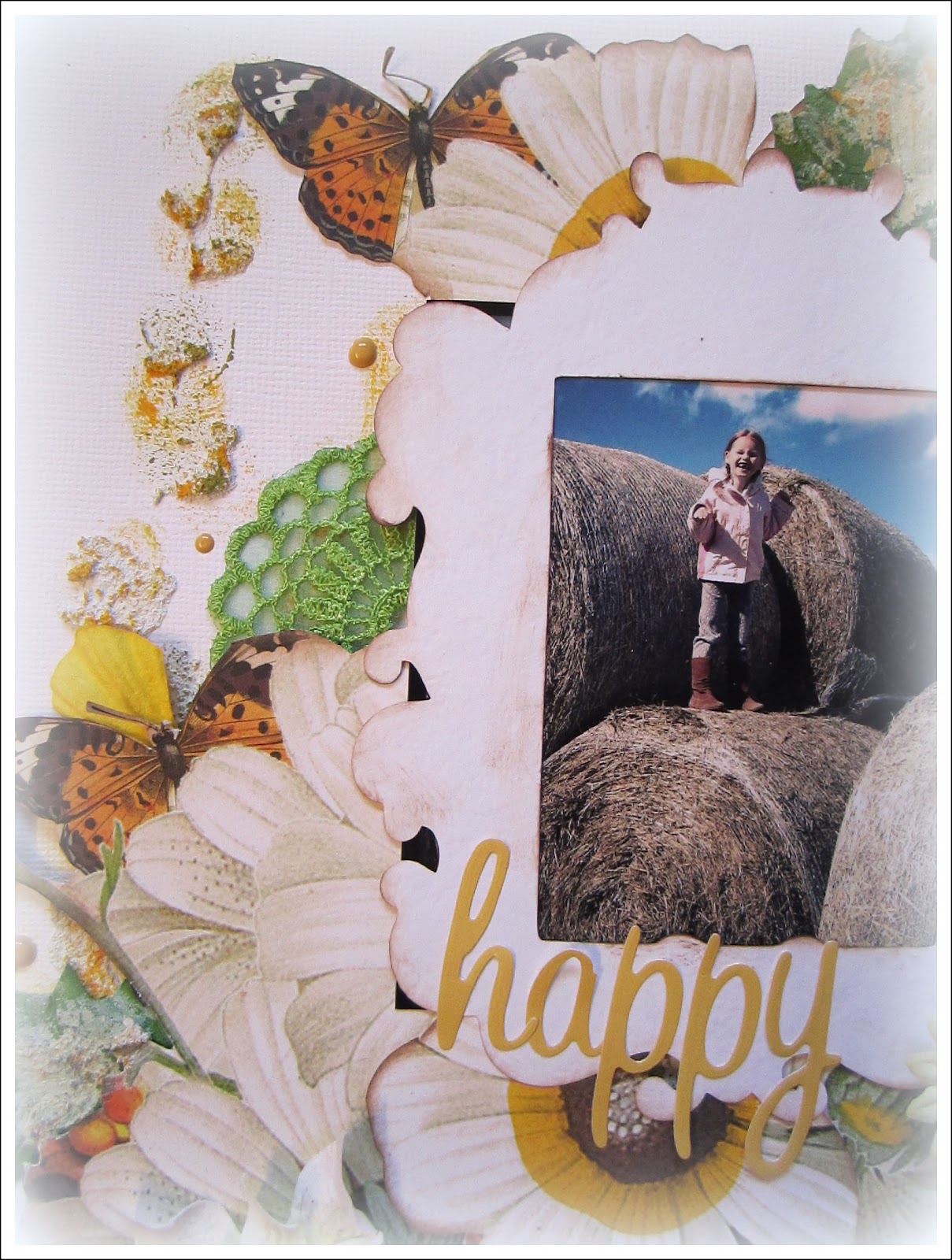 I did a lot of fussy cutting for this layout. I love the flowers from the Wonderfall Collection.