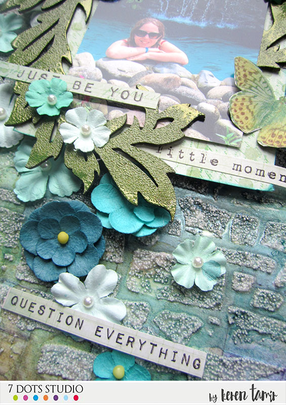 I created this tropical layout using the 9th Wave collection as the background. The Coral Reef paper was the perfect paper for this photo taken in Costa Rica’s hot springs