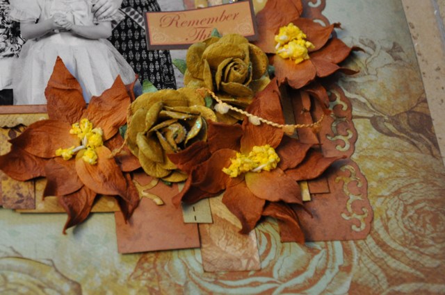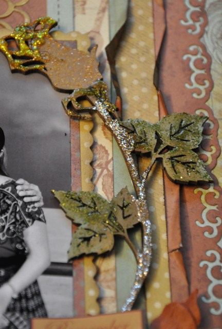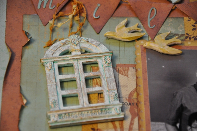 Here is my DT reveal for Bird is the word. The Birdie word is REMEMBER. I used these beautiful “Madame Boutique” papers by Kaisercraft. I love the combination of colours in these papers. I also used the January Saturday Sketch #1 from Kaisercraft for the challenge. Some of the embellishments are really cool on this layout. I used this clay window I got from Recollections and some clay birds I got in an Etsy shop, I also use some Prima and Petaloo flowers. Finally I inked and glittered a beautiful Dusty Attic chipboard rose. I used the word remember in the journaling over the flowers. It says: “remember this”