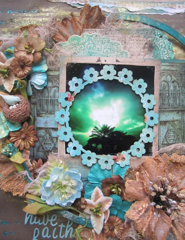 I love this picture of the beautiful sunset in Florida. I was inspired by the colours of the mood board. I love the combination of turquoise and brown and it worked perfectly with the photo. I also got inspired by the beautiful rustic doors & was so glad I could use these gorgeous wooden doors from Prima! I can’t wait to see everyone’s creations!!