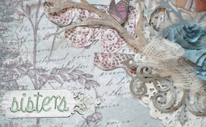 The first one is from Once Upon a Sketch blog. I used their sketch and journaled about friendship. The journaling is on a tag, hidden behind the doily. It says: “We were born as sisters, We’ve grown up as friends, Great friends”