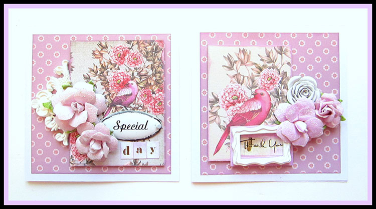 I loved incorporating a little pink bird in each of the cards and used polymer and metal embellishments to compliment it.