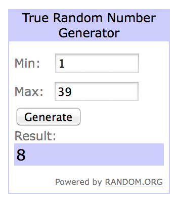 Here are the winners of my give-away